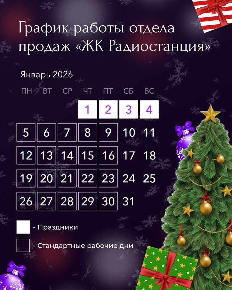 График работы отдела продаж ЖК «Радиостанция» в новогодние праздники: